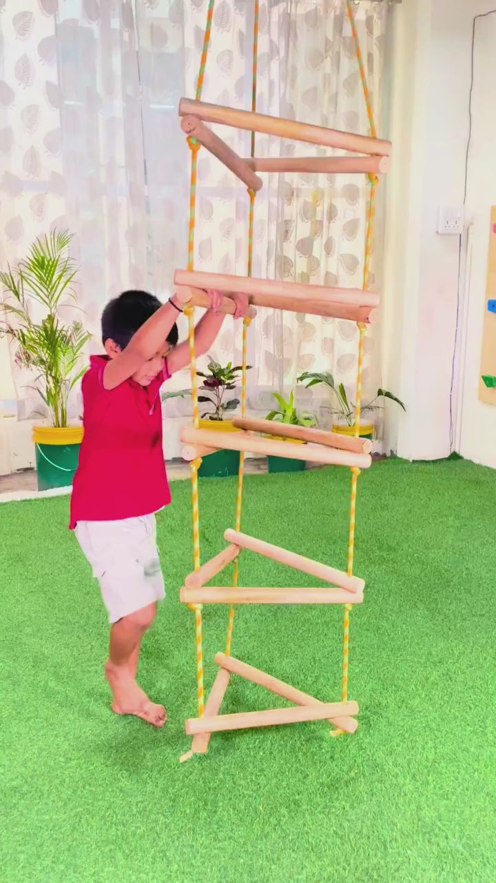 - Physical Development: The ladder toy promotes physical activity and helps children develop crucial gross motor skills such as balance, coordination, and strength. Climbing and swinging on the ladder engage multiple muscle groups, contributing to healthy physical development.